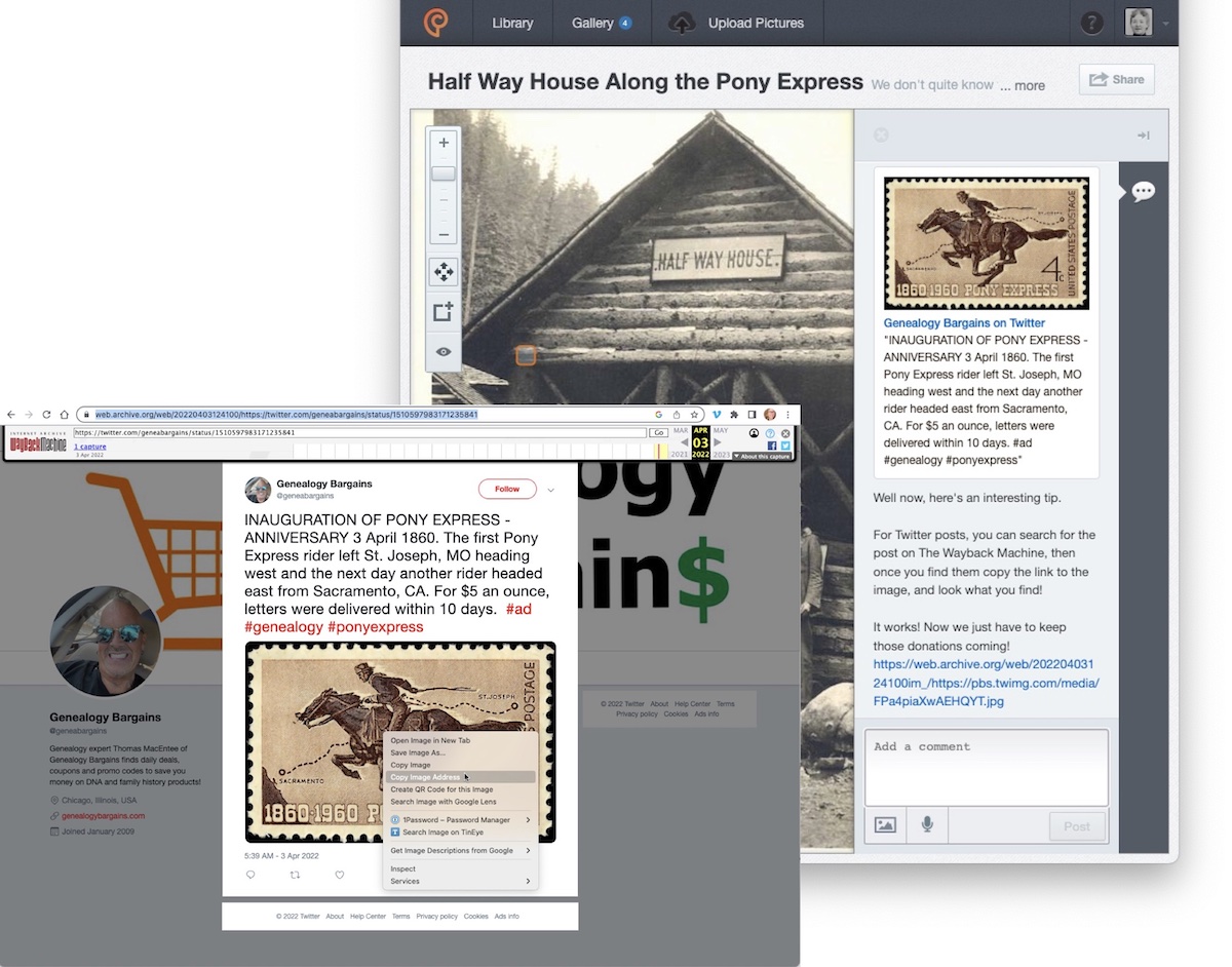 Interesting Twist: Our new friends on Mastodon recently reminded us that you can add any specific social media post on The Internet Archive's Wayback Machine, as a way to preserve the link. (A special hat-tip to @genealogyadventurestv for the tip!)