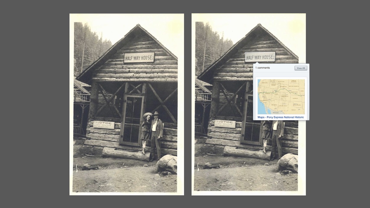 In our cover image, you'll see an example of how that works here in the cover image to this post where an article about the Pony Express is pasted into a selection around the sign "Half Way House." Since the linked article included a map of the Pony Express Route as the cover image, Ponga is able to bring up that image as a content "preview" for the selection. If playable media is pasted in as a link, the preview isn't just a static link, it's playable as embedded media.